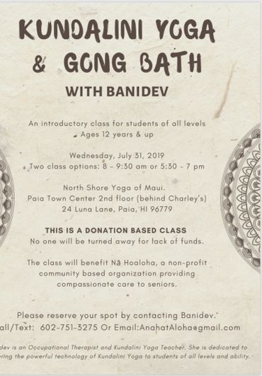 Limited to 18 guests. Deposit required by 8/18. Email for full details king@nsyogamaui.com